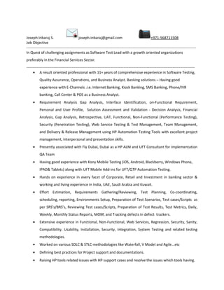 Joseph Inbaraj S 11 Years Alm Admin Resume