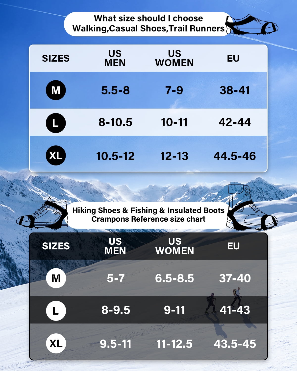 11 Spikes Crampons Stainless Steel Anti Slip Microspikes Ice Cleats Grips For Hiking Shoes And Boots Hiking Fishing Walking Mountaineering Black M Walmart Com